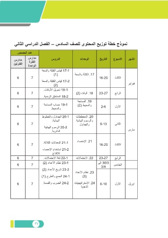 يناثلا يساردلا لصفلا – سداسلا فصلل ىوتحملا عيزوت ةطخ جذومن