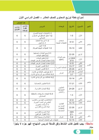 لولأا يساردلا لصفلا – رشاعلا فصلل ىوتحملا عيزوت ةطخ جذومن