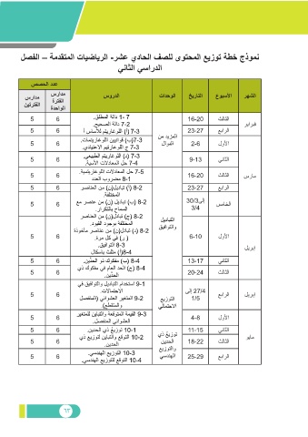 لصفلا – ةمدقتملا تايضايرلا -رشع يداحلا فصلل ىوتحملا عيزوت ةطخ جذومن