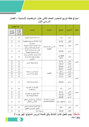 لصفلا – ةيساسلأا تايضايرلا -رشع يناثلا فصلا ىوتحملا عيزوت ةطخ جذومن