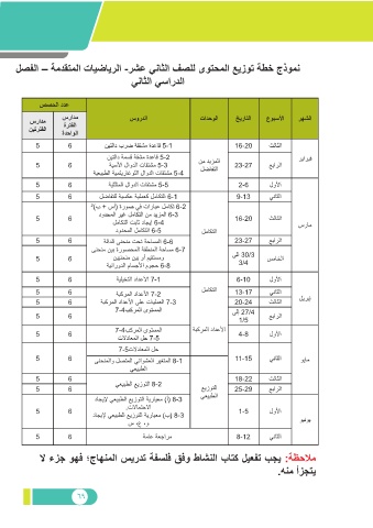 لصفلا – ةمدقتملا تايضايرلا -رشع يناثلا فصلل ىوتحملا عيزوت ةطخ جذومن