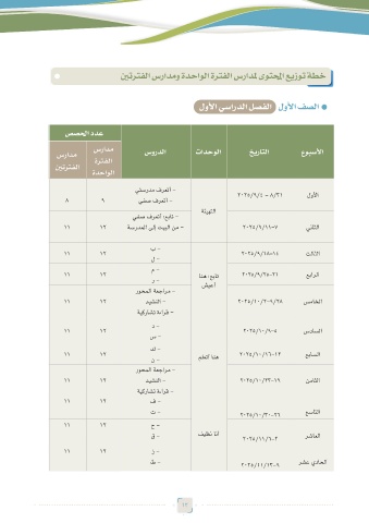 سرادم ةرتفلا سوردلا تادحولا خيراتلا عوبسلأا