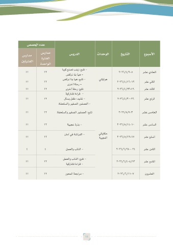 سرادم ةرتفلا سوردلا تادحولا خيراتلا عوبسلأا
