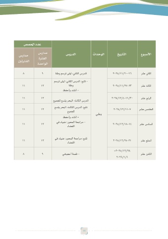 سرادم ةرتفلا سوردلا تادحولا خيراتلا عوبسلأا