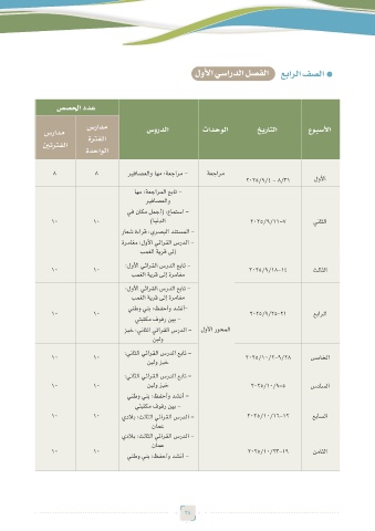 سرادم ةرتفلا سوردلا تادحولا خيراتلا عوبسلأا