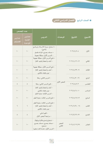 سرادم ةرتفلا سوردلا تادحولا خيراتلا عوبسلأا