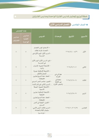 سرادم ةرتفلا سوردلا تادحولا خيراتلا عوبسلأا