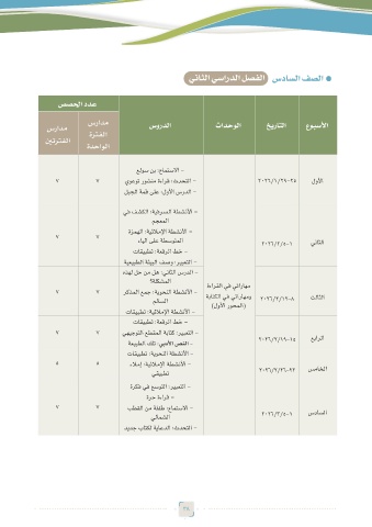 سرادم ةرتفلا سوردلا تادحولا خيراتلا عوبسلأا