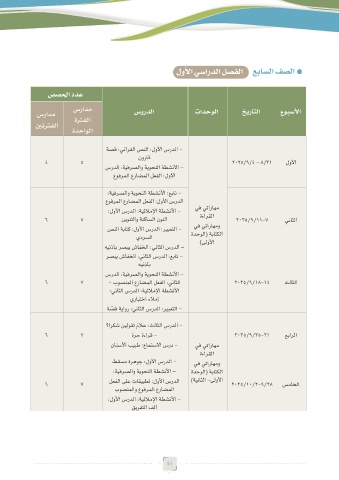 سرادم ةرتفلا سوردلا تادحولا خيراتلا عوبسلأا