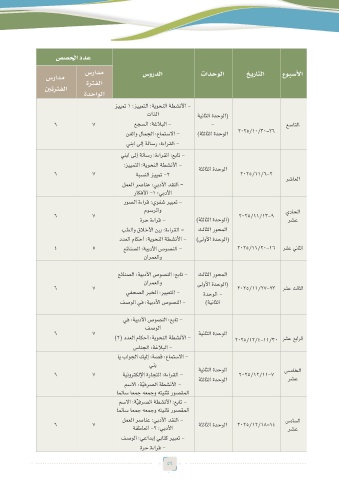سرادم ةرتفلا سوردلا تادحولا خيراتلا عوبسلأا