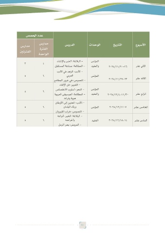 سرادم ةرتفلا سوردلا تادحولا خيراتلا عوبسلأا