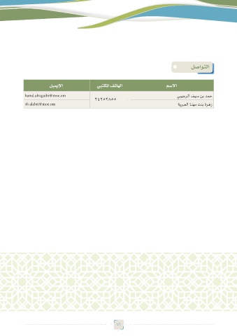 لصاوتلا لييملإا يبتكلما فتاهلا مسلاا hamd.alrugaibi@moe.om يبيجرلا فيس نب دمح ٢٤٢٥٢٨٥٥ sb.alabri@moe.om ةيربعلا اـنهم تنب ةرهز 76