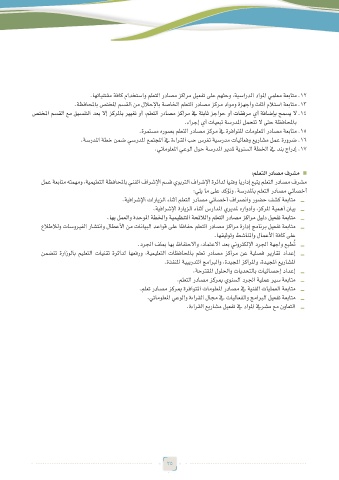 .اهتاينتقم ةفاك مادختساو ملعتلا رداصم زكارم ليعفت ىلع مهثحو ،ةيساردلا داولما يملعم ةعباتم . 12