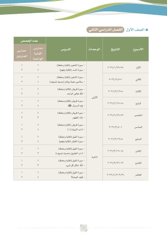 سرادم ةرتفلا سوردلا تادحولا خيراتلا عوبسلأا