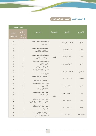 سرادم ةرتفلا سوردلا تادحولا خيراتلا عوبسلأا