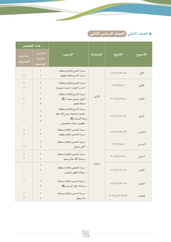 سرادم ةرتفلا سوردلا تادحولا خيراتلا عوبسلأا