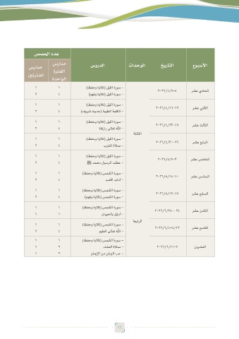 سرادم ةرتفلا سوردلا تادحولا خيراتلا عوبسلأا