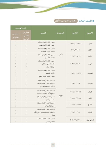 سرادم ةرتفلا سوردلا تادحولا خيراتلا عوبسلأا