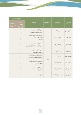 سرادم ةرتفلا سوردلا تادحولا خيراتلا عوبسلأا