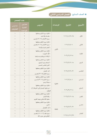 سرادم ةرتفلا سوردلا تادحولا خيراتلا عوبسلأا