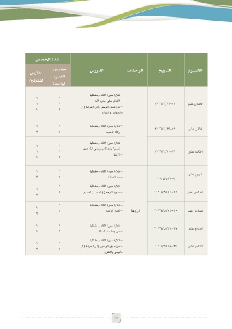 سرادم ةرتفلا سوردلا تادحولا خيراتلا عوبسلأا
