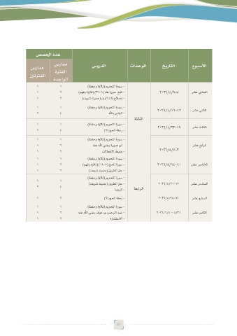 سرادم ةرتفلا سوردلا تادحولا خيراتلا عوبسلأا