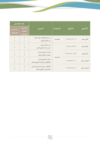 سرادم ةرتفلا سوردلا تادحولا خيراتلا عوبسلأا