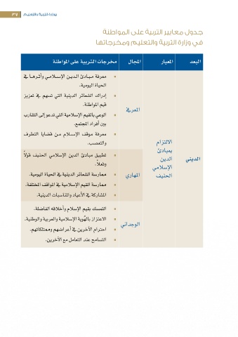 ةنطاوملا ىلع ةيبرتلا ريياعم لودج